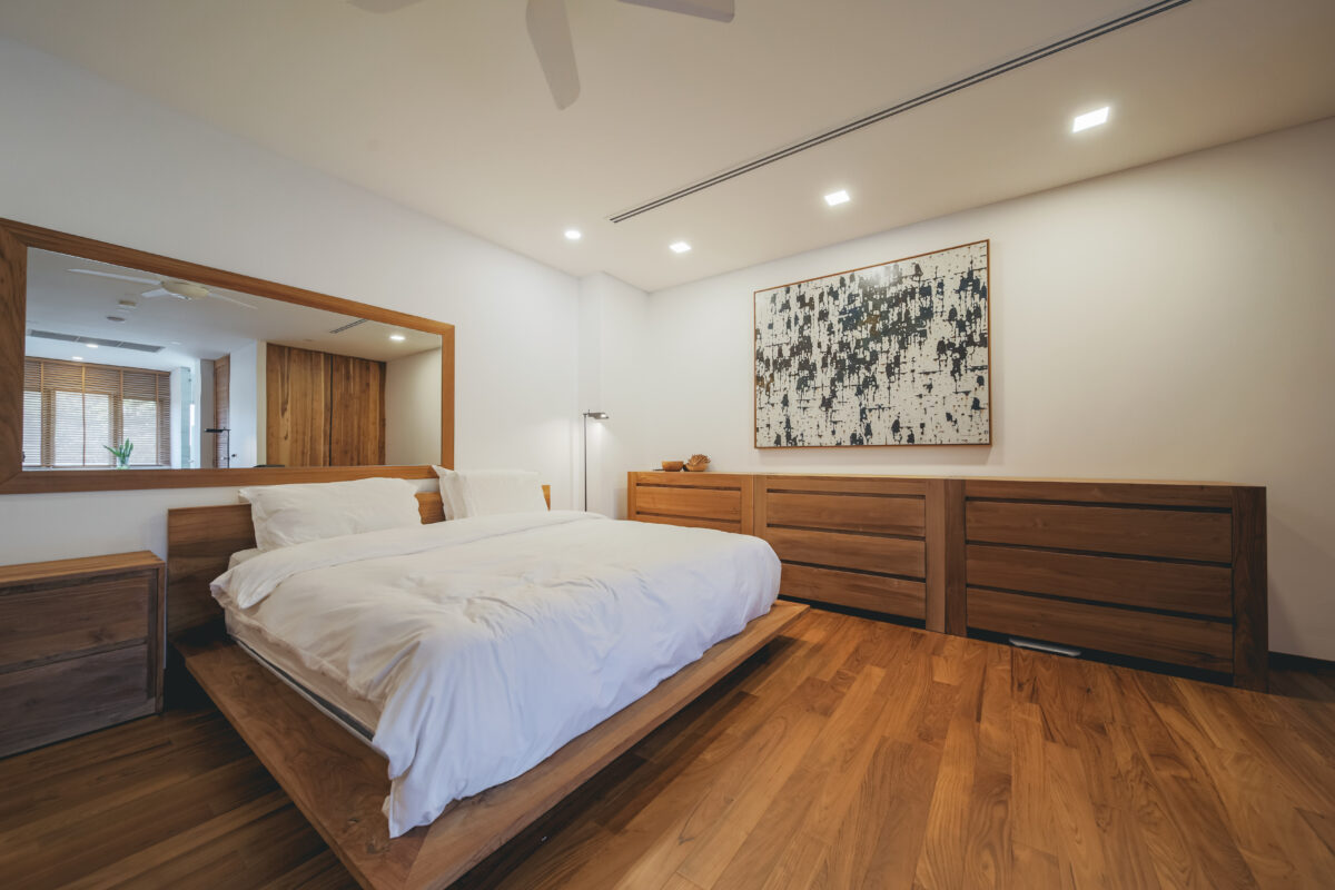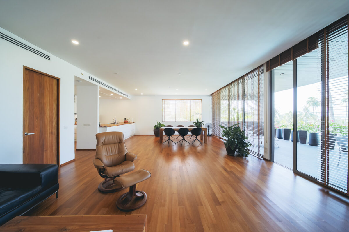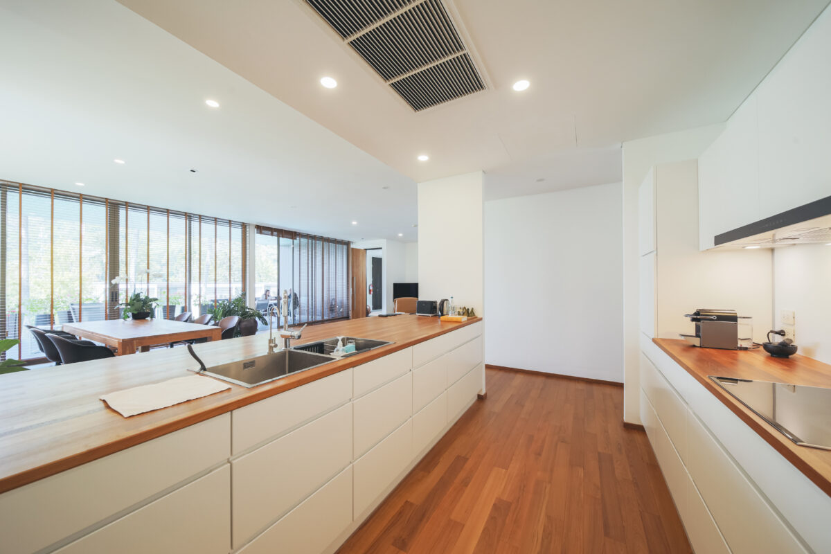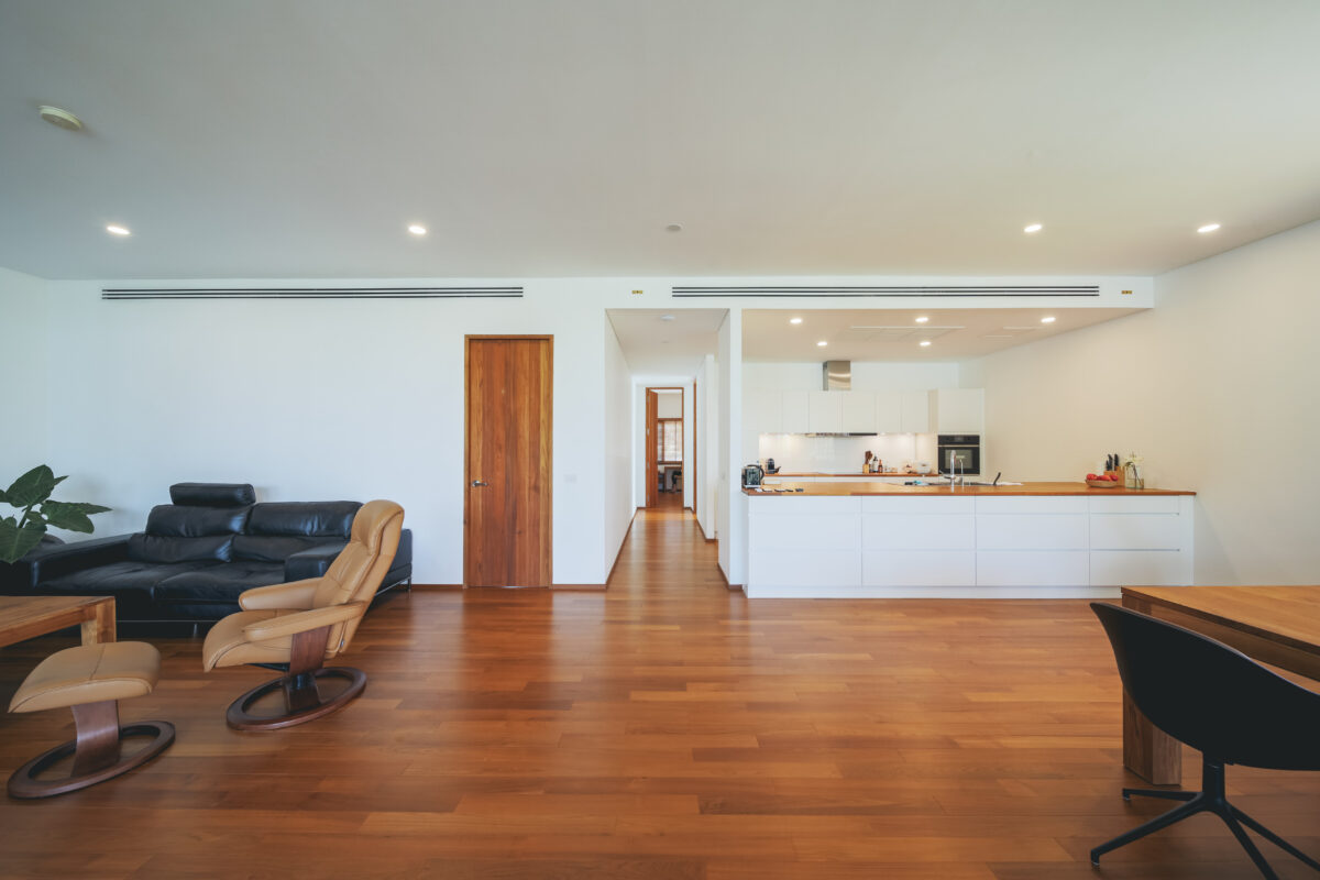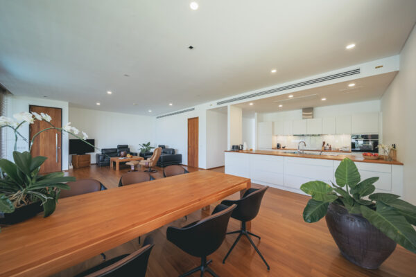 This penthouse unit is inspired by Nordic architecture, Clean Line built in, unique piece of furniture,